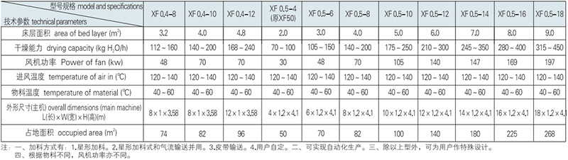 | 床层面积(m2) | 0.25 | 0.5 | 1.0 | 1.5 | 0.6 | 1.2 | 1.8 | 2.4 | 3.0 | 1.6 | 2.4 |